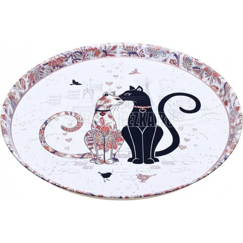 Размеры 33*2,1 СМ Материал: Парижские коты Поднос - это необходимый предмет для организации сервировки стола. Поднос имеет оптимальную круглую форму диаметром 33 см и удобные для переноса содержимого приподнятые стенки высотой 2,1 см. Коллекционный дизайн "Парижские коты" создает уютную атмосферу в интерьере. Благодаря глянцевой поверхности, поднос неприхотлив в уходе – достаточно протереть влажной тряпкой.