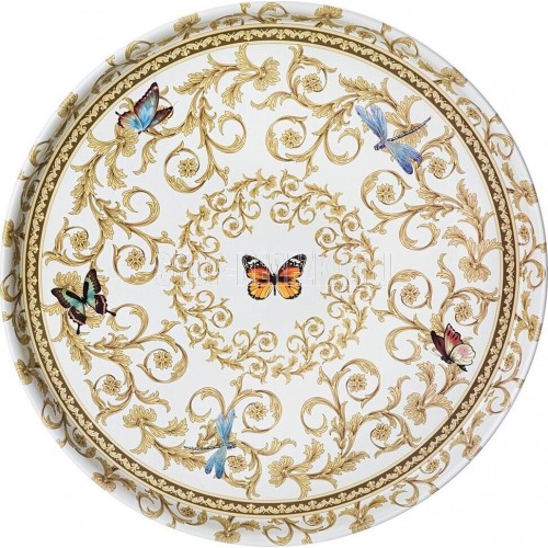 Поднос имеет оптимальную круглую форму диаметром 33 см и удобные для переноса содержимого приподнятые стенки высотой 2,1 см. Коллекционный дизайн создает уютную атмосферу в интерьере. Благодаря глянцевой поверхности, поднос неприхотлив в уходе – достаточно протереть влажной тряпкой. Материал: Сталь Окрашенная