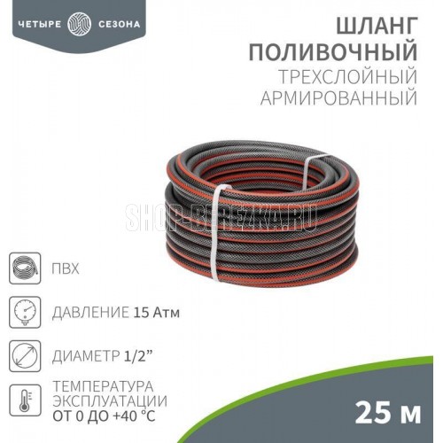 ЧЕТЫРЕ СЕЗОНА (62-0224) Шланг поливочный ПВХ 3-х слойный армированный 1/2 25м Стандарт