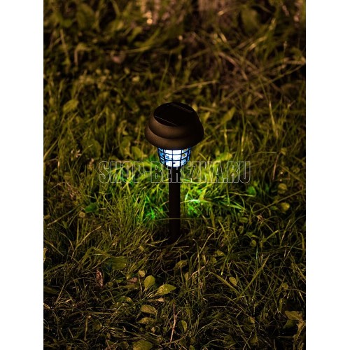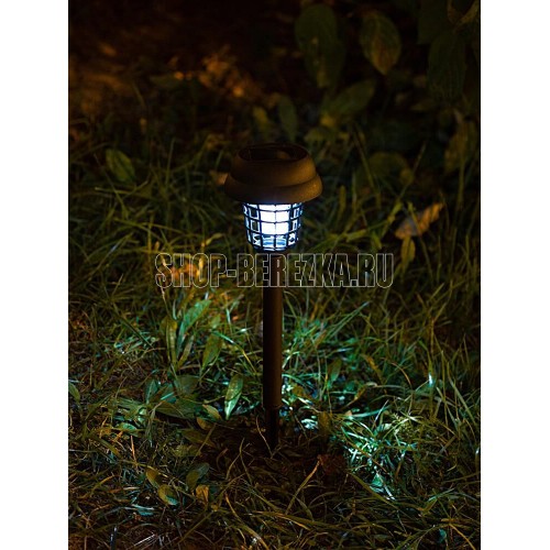 Садовый светильник на солнечной батарее с колышком для уничтожения насекомых Заряд от солнечной батареи. Аморфная солнечная панель. 2 варианта свечения: белый свет и ультрафиолетовый для привлечения и устранения насекомых . Размер: 9х9х35см Питание: 1,2В AАA Ni-Mh 600 мАч Солнечная панель: 2В 60мА Количество светодиодов: 2 LED Цвет светодиодов: белый и фиолетовый Материал: пластик, металл