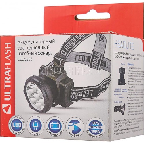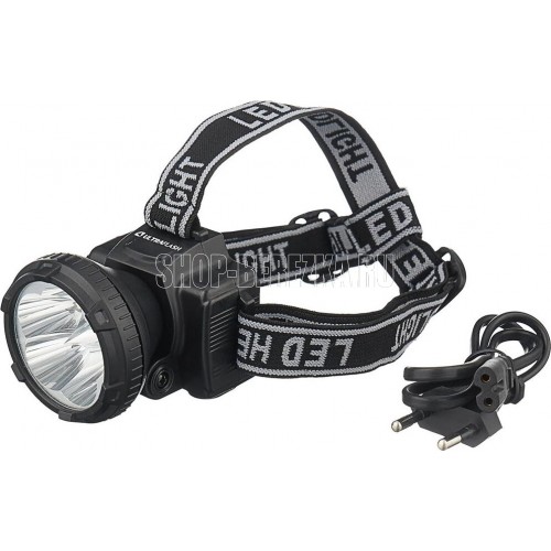 Фонарь электрический светодиодный налобный аккумуляторный. Цвет корпуса: матовый черный. Материал корпуса - пластик. Источники света - 5 светодиодов с индивидуальными отражателями и суммарным световым потоком - до 20 люмен. Дистанция освещения - до 20 метров. 2 режима работы - 5 светодиодов в режиме полной мощности / 5 светодиодов в режиме половины мощности. Выключатель: двухпозиционный кнопочный. Время работы до 5 часов. Время заряда 7 часов. Степень пыле-влаго-защиты IP22.