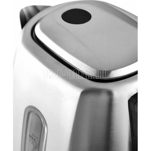 Максимальная мощность 2200 Вт. Максимальный объем 1,7 литра. Корпус из нержавеющей стали. Внутренняя подсветка. Индикатор уровня воды. Автоотключение при закипании воды. Отключение при отсутствии воды. Моющийся фильтр. Противоскользящее основание. Электропитание 220-240 В.,~50-60 Гц.