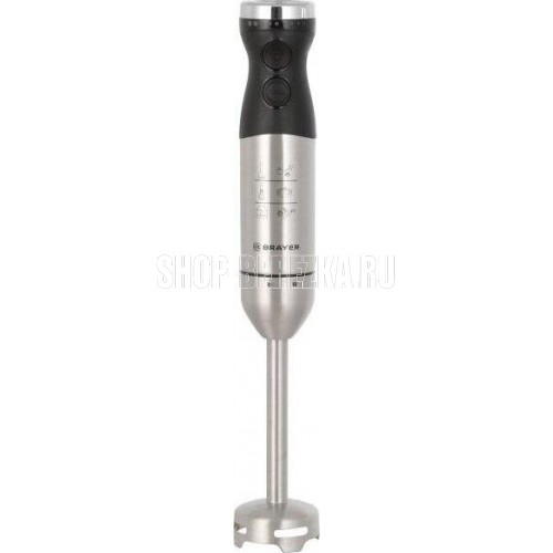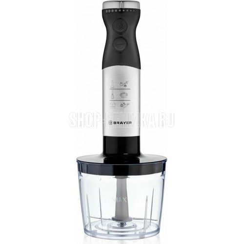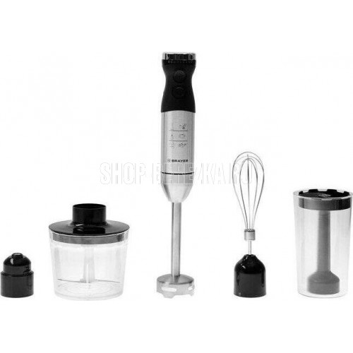 1244BR Блендер погружной BRAYER, 800 Вт, НЕРЖ, Пюре, 2 ск, пл. рег, венч, стак 700 Мощность 800 Вт Погружная часть и лезвия из нержавеющей стали Корпус из пластика, декорирован нержавеющей сталью Плавная регулировка скорости Насадка-венчик для взбивания Насадка для приготовления пюре Стакан для смешивания объёмом 700 мл Насадка-блендер для измельчения и смешивания Насадка-измельчитель объёмом 500 мл Электропитание 220-240 В, ~ 50-60 Гц