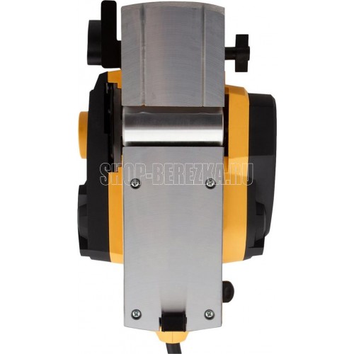 Рубанок электрический Denzel предназначен для обработки плоских поверхностей заготовок из древесины и ее производных, снятия фасок, выборки четверти (ступени). Особенности: оригинальная конструкция узла переключения направления выброса стружки, обеспечивающая улучшенную вентиляцию канала выброса в любом положении; 11-позиционная регулировка глубины строгания; функция "выборки четверти" 18 мм; алюминиевая подошва; индикатор включения Преимущества: функция переключения выброса стружки, уменьшающая вероятность засорения канала и позволяющая работать долгое время без его очистки; выключатель с защитой от случайного пуска; алюминиевая подошва; Продуманная эргономика и обрезиненная рукоятка делают использование машины более комфортным; Режущий барабан рубанка оснащен широко распространенными двухсторонними лезвиями. Оригинальная конструкция правой опоры барабана позволяет получать четверть глубиной до 18 мм, что является лучшим показателем в своем классе.