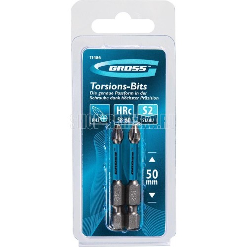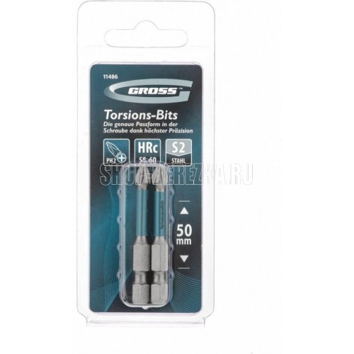 GROSS Бита торсионная PH2 x 50 мм, для ударных шуруповертов, 2 шт.