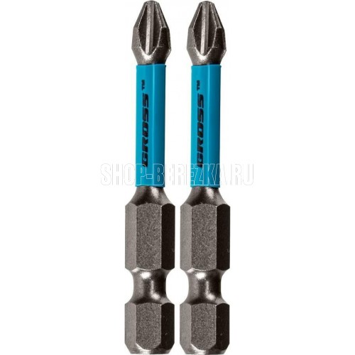 Набор торсионных бит PH2 x 50 мм Gross 11486, 2 шт., предназначен для монтажа и демонтажа резьбовых соединений с помощью ударного шуруповерта. Он незаменим в строительных, слесарных и монтажных работах, в автосервисах, при проведении ремонта в доме. Торсионная зона способна пружинить, за счет чего она частично амортизирует тангенциальный удар от шуруповерта. Такое решение позволяет равномерно распределить нагрузку по бите и избежать поломки шлица.ПреимуществаПродуманная конструкция — торсионная зона позволяет работать ударным шуруповертом даже с особо твердыми поверхностями без риска поломки бит.Высококачественный материал изготовления — японская легированная сталь S2 обеспечивает устойчивость бит к износу и увеличивает их ресурс.Износостойкость — биты закалены до твердости 58-60 HRC, что повышает сопротивляемость к деформации.Надежная фиксация насадок — шлицы бит намагничены, поэтому крепеж не выпадет, а мастер сможет свободной рукой придерживать закрепляемый материал.Защита от подделок — синее кольцо с логотипом ТМ Gross подтверждает оригинальность товара.Удобное хранение — насадки поставляются в блистере с европодвесом, который можно вешать на стенд.