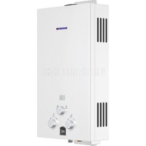 Проточный газовый водонагреватель Edisson E 20 D, белый, Полезная мощность 20 кВт, Тип камеры сгорания открытый, Максимальная температура воды 50 °С, Размеры (ШxВxГ) 340x590x140 мм, Установка вертикальная на стену с нижней подводкой (1/2), Управление механическое, Системы защиты газ-контроль, от перегрева, Индикация включения, Дополнительная информация: мин. давление воды: 0.25 атм; макс. давление воды: 8 атм; ограничение температуры нагрева; материал теплообменника: медь; тип розжига: электроподжиг; автоматическое поддержание температуры воды на выходе; диаметр дымохода: 110 мм