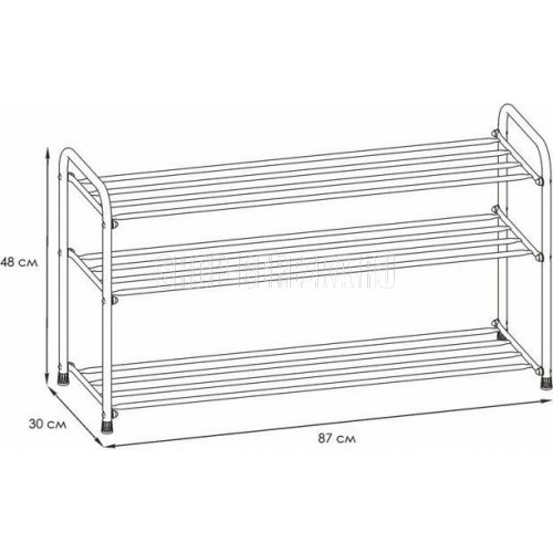 Разборная, состоит из 2 -х стоек и 3- х сварных полок Вес изделия: 3,02 кг Размер: 870х300х400мм Нагрузка на полку: до 8кг Цвет: черный Надежная сборно-разборная конструкция. Компактная подставка с тремя полками. Классическая форма. Допустимая нагрузка: до 8 кг на полку. Отличительные особенности: - Надежная сборно-разборная конструкция - компактная подставка с 3-мя полками - классическая форма - допустимая нагрузка до 8 кг на полку - Расстояние между полками 215 мм