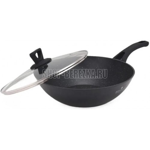 Сковорода Вок Со Стеклянной Крышкой Размер: - 28 см. (3,3 Лтр.) Материал: Литый Алюминий 3-Шаровое Мраморное Покрытие С мягкими силиконовыми ручками - Кнопка Крышка из огнеупорного стекла Внешний Корпус Термостойкий – Устойчивый к Высоким Температурам Подходит Для всех типов плит Турбо Индукционное Дно Подходит Для Посудомоечной Машины