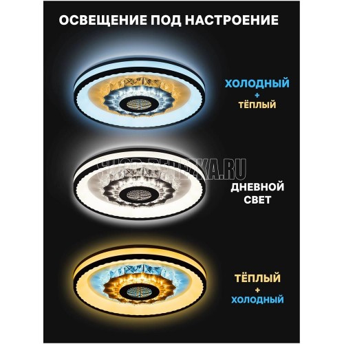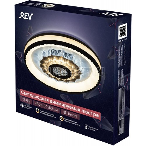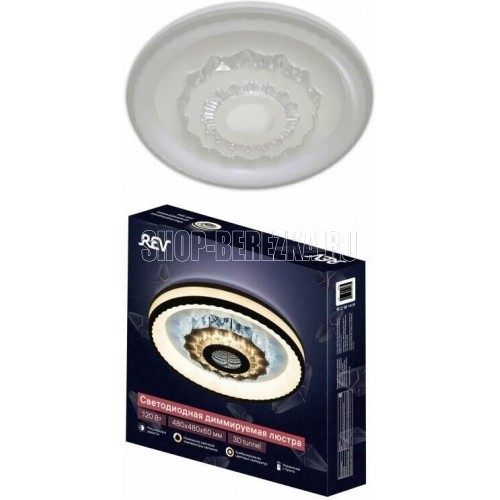 Люстра сд диммируемая CRYSTAL 3D с ДУ CLL-52368 120 Вт, 3000-6000К, 480х480х60мм, REV RITTER Светодиодная диммируемая люстра серии CRYSTAL 3D представляет собой светильник с металлическим основанием и акриловыми плафонами в современном стиле. Есть возможность изменения цвета на тёплый, холодный или естественный, настройка яркости свечения и режим ночника. Управление осуществляется с помощью радиопульта. Красота люстры серии CRYSTAL 3D достигается с помощью светового тоннеля с эффектом 3D. Лофт или модерн – в каждом из таких интерьеров люстра займёт достойное место и станет изысканным предметом декора вашего жилища.