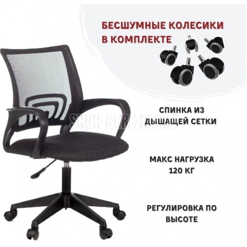 Кресло оператора Конструкция: Регулировка высоты (газлифт)Пластиковая крестовина Подлокотники пластиковые Ограничение по весу: 120 кгСоответствует стандарту Bifma Гарантия: 12 мес.Материал обивки: Спинка – сетка, сиденье – ткань
