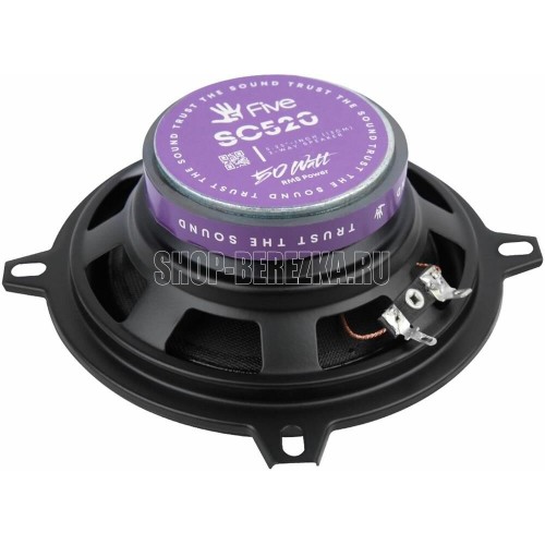 5,25-дюймовый (13,3 см) 2-полосный коаксиальный динамик Бумажный конус с краем из бутилкаучука, штампованная стальная корзина, 30-миллиметровый твитер из майлара, Частотная характеристика: 75 Гц ~ 20 кГц, Чувствительность: 88 дБ / Вт / м Магнит: 7070 x 10 мм (5,4 унции) Звуковая катушка: 25 мм KSV, Номинальное сопротивление: 4 Ом Номинальная мощность (среднеквадратичная): 50 Вт Пиковая мощность (PMPO): 150 Вт Монтажная глубина: 44 мм (1,73 дюйма) Диаметр установочного отверстия: 117 мм (4,6 дюйма)