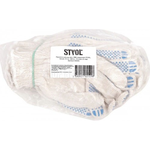 STVOL SWG01 ХБ с ПВХ покрытием, белые, 42 гр., 150 пл., 7,5 класс 5 пар