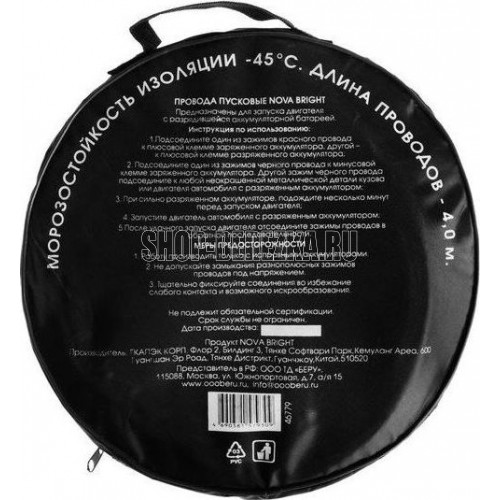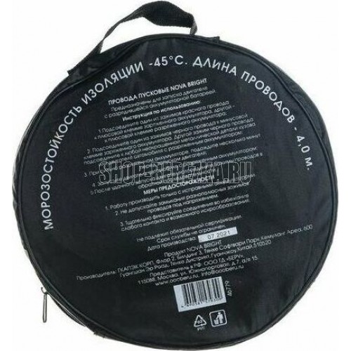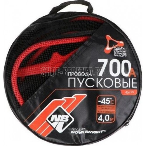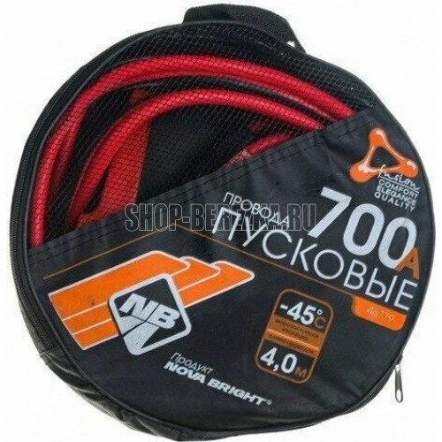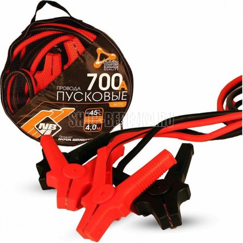 Предназначены для запуска двигателя с разрядившейся аккумуляторной батареей от аккумулятора другого автомобиля. Изолированные ручки зажимов. Сила тока: 700 А. Длина: 4 м. Минимальная температура эксплуатации: -45°C Материал жилы провода – медь. В комплекте сумка для хранения.