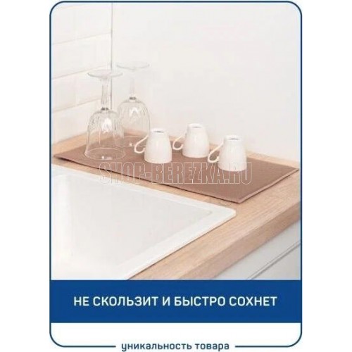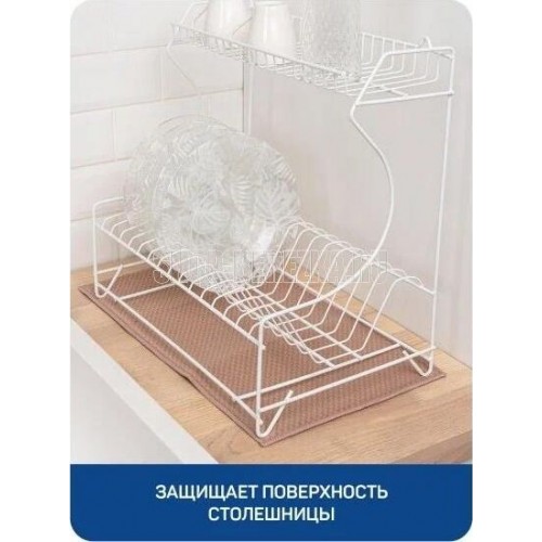 Коврик из микрофибры для сушки, размер 24*45см. Подходит для сушки посуды. Не скользит, отлично впитывает, защищает столешницу. Материалы: 100% полиэстер, поролон, ПВХ