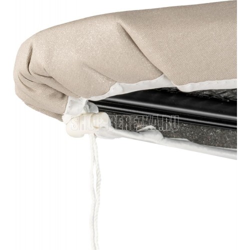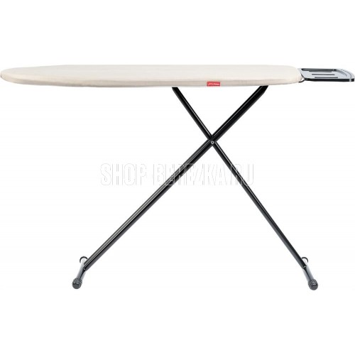 Доска гладильная. Размер гладильной поверхности 122*38см, сетка, чехол из хлопка с антипригарным покрытием 180г/м2, поролон 2мм, войлок 2мм (плотность 175г/м2), PET, поролон (цвет графит) 3мм, стопер с кнопкой. Регулировка высоты 67-90см (7 уровней), вес 4,6кг, выдерживает нагрузку 40кг, подставка для утюга 32*22см. Колпачки на ножках из PE не царапают пол. Размер доски в сложенном виде 157*38*6см