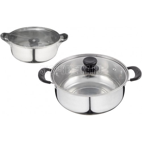 БЕЗ ТМ Кастрюля Promo, объем 2,2 л, из нержавеющей стали с крышкой из жаропрочного стекла (104614)