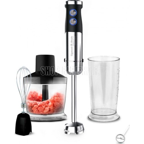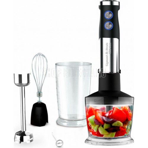 Блендер погружной многофункциональный 4 в 1 Мощность: 1300 Вт Напряжение: 220-240В, 50/60Гц Объем чаши: 0.8л Объем стакана: 0.6л Кол-во скоростей: 12 Импульсный режим (турбо): да LED подсветка кнопок Тип двигателя: DC