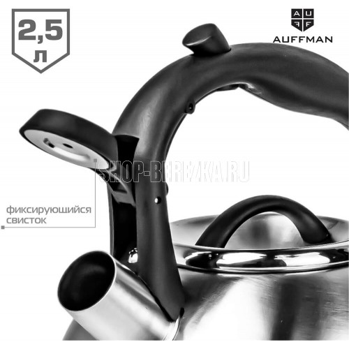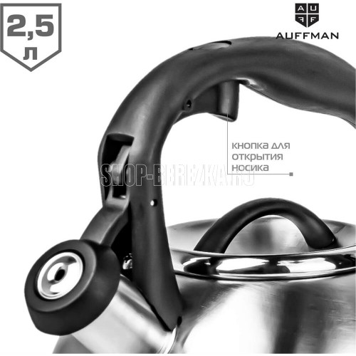 Чайник. Корпус: нержавеющая сталь, толщина 0,3 мм, высота 11 см Внешний вид: матовый лак Внутренняя отделка: матовый лак Крышка: крышка из нержавеющей стали Ручка: нейлоновая ручка