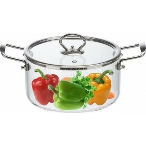 Кастрюля ITALIANO, объем 2,5 л, из жаропрочного боросиликатного стекла с крышкой с пароотводом Материал: жаропрочное боросиликатное стекло, нерж сталь 201. Размер: 19,5*10,5 см, объем: 2,5 л. (макс объём 2,85л) Диаметр 19,5 см Подходит для всех типов плит (включая газовые), кроме индукционных. Можно использовать в посудомоечной машине. Можно использовать в духовом шкафу. Цветная коробка с ручкой из пластика/форма из пенопласта. Ручки+зап части к ним упакованы в отдельную коричневую коробку (внутри стекл кастрюли). Толщина стекла - 4,1 мм.