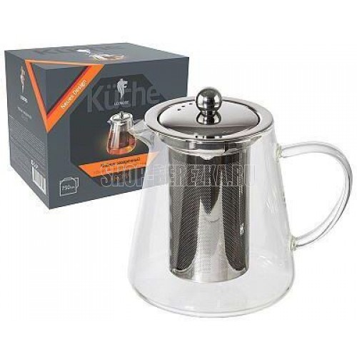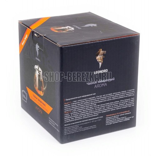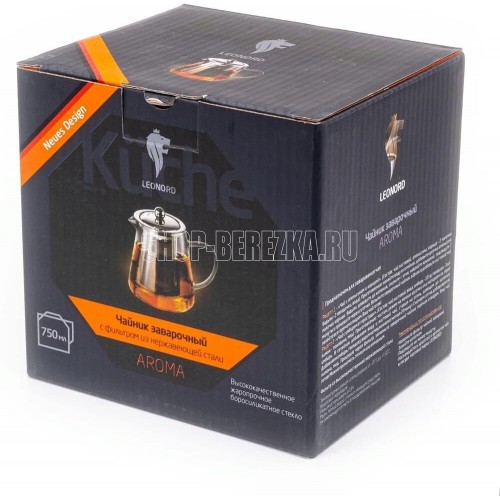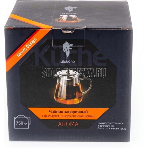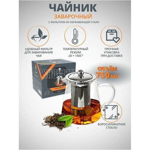 Чайник заварочный, AROMA. Материал: жаропрочное боросиликатное стекло. Крышка/фильтр из 304 нержавеющей стали. Объем: 750 мл. Температурный режим: -20 +150С, без резких перепадов температур. Не рекомендуется мыть в посудомоечной машине. Мыть теплой водо