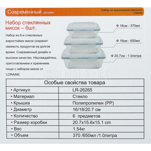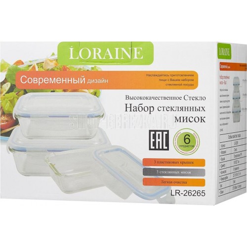 Набор стеклянных мисок с крышками LORAINE выполнен из жаростойкого стекла и предназначен для хранения пищевых продуктов. Благодаря технологии изготовления, изделие в течение всего срока своей службы не меняет цвет и не впитывает запахи. Крышка с силиконовой вставкой герметично закрывается. Такой контейнер удобен для ежедневного использования в быту. Подходит для использования в холодильнике и в микроволновой печи. Подходит для мытья в посудомоечной машине.