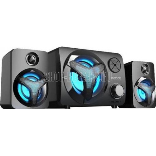 2.1, 11 Вт RMS (3 Вт х 2 + 5 Вт), Частотный диапазон 45-18 000 Гц Соотношение сигнал/шум 65 дБ Разделение каналов 45 дБ Вход 3.5mm,Buletooth,TF, USB, FM Питание USB 5V 2A Колонки: 4 Ом, 2”х2 шт., 81 x 81 x 115 мм сабвуфер 3, 272 x 180 x 137 мм