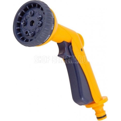 Пистолет для полива предназначен специально для направленного полива растений на садовом участке и в огороде. 10 режимов. Материал: высокопрочный ABS пластик, термопластичная резина, металл. Упаковка: блистер.
