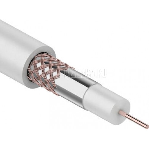 REXANT (01-2641) Кабель коаксиальный RG-59U+CU, CU/AL/CU, 64%, 75 ОМ, бухта 100М белый
