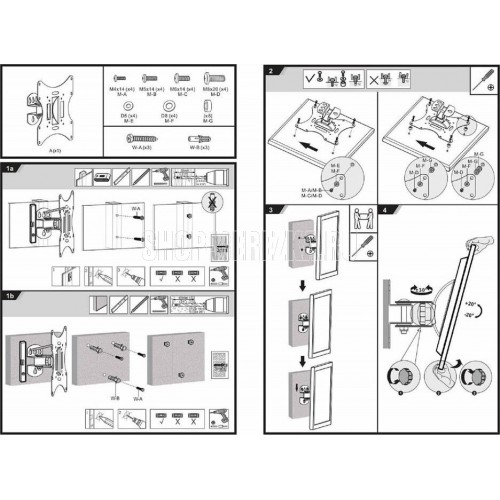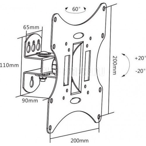 Диагональ экрана: 17"-43". * Подходит для изогнутых телевизоров. VESA: 75x75, 100x100, 200x100, 200x200. Максимальная нагрузка: 30 кг. Расстояние от стены: 90 мм. Угол поворота: +30°~-30°. Угол наклона: +20°~-20°. Материал: холоднокатаная сталь. Классический надёжный кронштейн с функциями поворота и наклона. Удобная регулировка угла наклона и фиксация экрана. Простая долговечная конструкция.