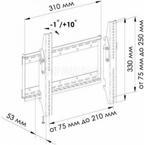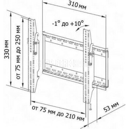 Кронштейн LPS 30-50 предназначен для крепления на стену LCD, LED, ЖК телевизора с диагональю экрана 17" -32" (43,2 см – 81,3 см) Тип: с наклоном ugolот -1° до 10°. Диагональ: 17" -32" (43,2 см – 81,3 см). Посадочные разм.: от 75 до 210мм (Г), от 75 до 250мм (В) Нагрузка: до 75 кг.