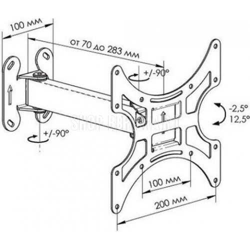 Кронштейн LPS 41-11 предназначен для крепления на стену LCD, LED, ЖК телевизора с диагональю экрана 17" -32" (43 см – 81,3 см), тип кронштейна: наклонно - поворотный, с вращением и частичным складыванием, угол наклона от -2,5° до +12,5°, поворот +/-90°
