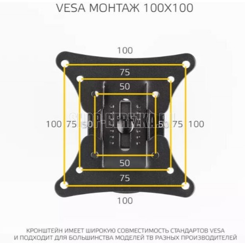 Назначение: для LCD- и LED-телевизоров. Совместимость с диагональю ТВ: 10, 24, 32. Тип кронштейна: наклонно-поворотный. Совместимость: поддерживает ТВ с диагональю 10-32. Максимальный вес ТВ: 20 кг. Крепление стандарта Vesa: до 100х100. Типы VESA: 100x100, 50x50, 75x75. Угол наклона: +/-15°. Масштабирование по горизонтали: да. Масштабирование по вертикали: да. Материал корпуса: сталь, пластик. Минимальное расстояние от стены: 85 мм. Максимальное расстояние от стены: 90 мм. Комплектация: Кронштейн, настенные профили, универсальные опоры, крепежные детали, инструкция, гарантийный талон. Цвет: черный. Размеры (ШхВхГ): 118x116x85 мм. Вес: 0.4 кг.