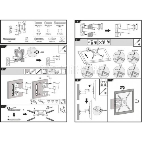 Диагональ экрана: 32"-55". VESA: 100x100,200x100,200x200,300x200,300x300,400x200,400x400. Максимальная нагрузка: 20 кг. Расстояние от стены: 62~309 мм. Угол поворота: +90°~-90°. Угол наклона: +3°~-10°. Материал: холоднокатаная сталь. Движение по нескольким осям обеспечивает максимальную гибкость - можно наклонять и поворачивать телевизор для удобного просмотра с любого места в комнате. Открытый дизайн обеспечивает лучшую вентиляцию и более легкий доступ к проводам.
