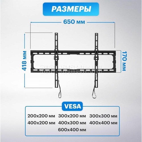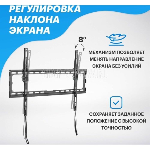 Тип: наклонный Назначение: телевизионный Цвет: черный Мин. диагональ: ТВ 37 Макс. диагональ: ТВ 70 Максимальный вес оборудования: 45 кг Установка: настенный Расстояние от стены до кронштейна: 20 мм Угол наклона: 0°/-8° VESA: 200x200, 300x200, 300x300, 400x200, 400x300, 400x400, 600x400 мм Крепление: в комплекте С механизмом быстрой фиксации на защелках