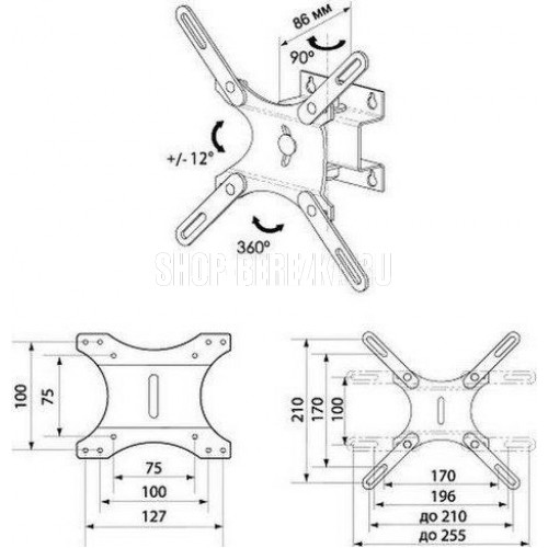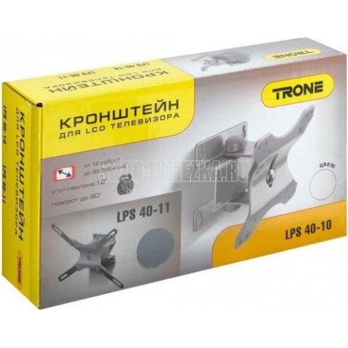 Наклонно-поворотный. Для LCD и LED TV от 15” до 32” наклон+/- 12*, поворот 90*, стандарт VESA: 75х75, 100x100, 127х100, 100х200, 200х200, нагрузка до 25 кг., Материал: сталь .Цвет: серебро металлик.