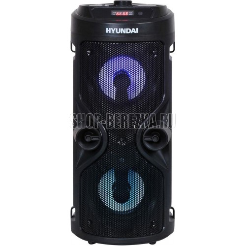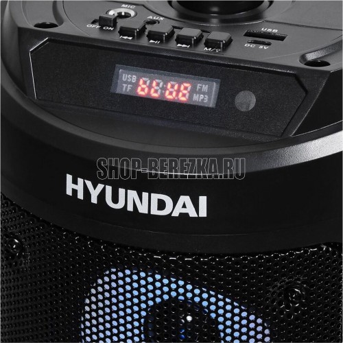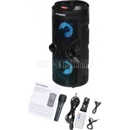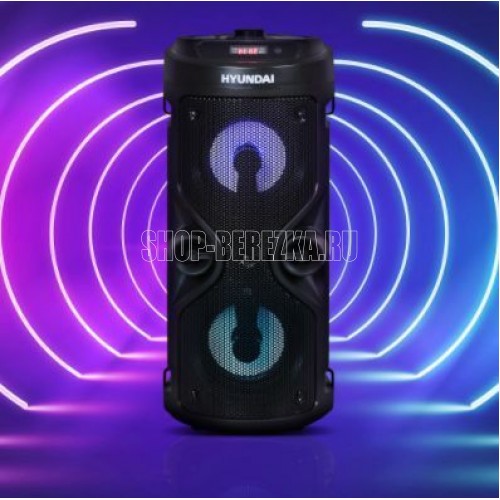 Музыкальный центр HYUNDAI H-MC150 при небольших габаритах выдает громкое чистое звучание. Работа от аккумулятора позволяет брать колонку с собой, а функция караоке разнообразит вечеринку с друзьями. Градус веселья поднимет светодиодная подсветка, а пульт ДУ позволит управлять тусовкой из любой точки квартиры, дома или уличной танцплощадки. HYUNDAI H-MC150 умеет: воспроизводить музыку с различных источников; работать в качестве громкоговорителя и караоке-системы; регулировать звучание частот треков. Источники воспроизведения Слушайте музыку с телефона, карт памяти или флешек. За беспроводное соединение отвечает модуль Bluetooth версии 5.0. Его стабильная работа сохраняет сигнал и высокую скорость передачи информации даже при наличии большого количества внешних помех. За чистоту воспроизведения отвечают два динамика с суммарной мощностью в 50 Вт. Для H-MC150 подходят карты памяти формата MicroSD и USB накопители размером до 32 Гб.