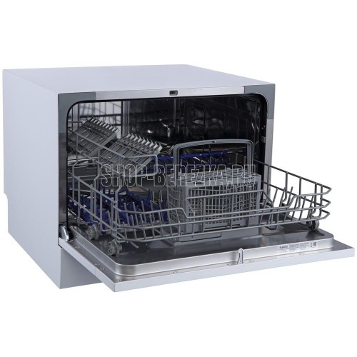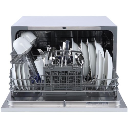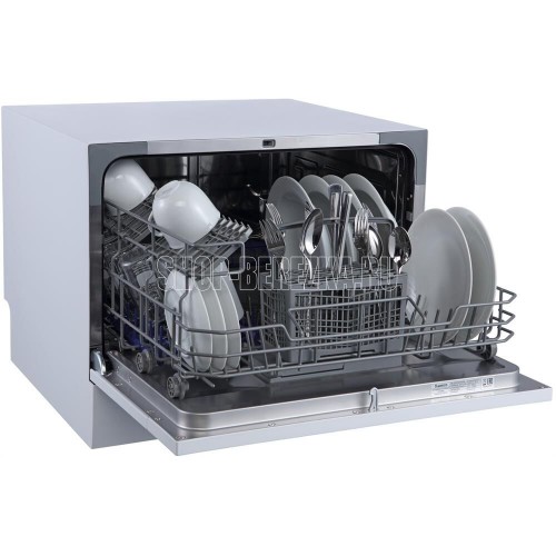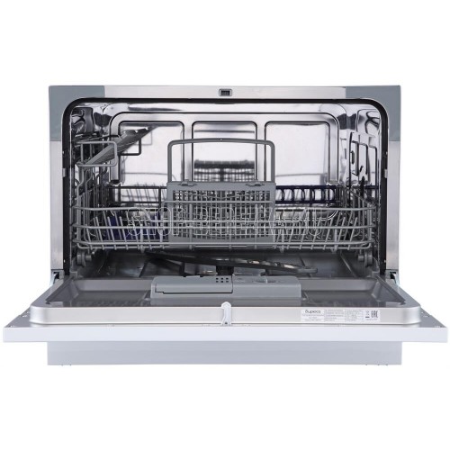 Компактная настольная посудомоечная машина рассчитана на 6 комплектов; Габариты ВхШхГ: 43,8x55x50 см; Отсрочка запуска: 2/4/8ч; LED-индикация; Класс: А+; 5 программ: интенсив, ECO, обычная, стекло, быстрая; Расход воды за цикл: 6л; Энергопотребление за цикл: 0,23 кВт*ч
