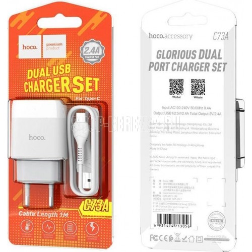 HOCO (6931474713070) C73A 2USB 2.4A TYPE-C 1м белый