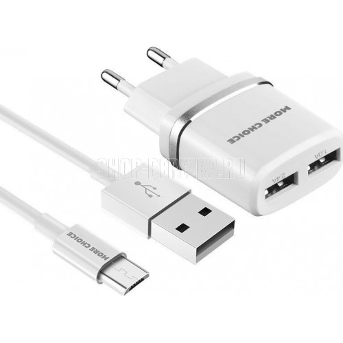 MORE CHOICE (4627151190143) NC22m СЗУ 2USB 2.4A для micro USB White