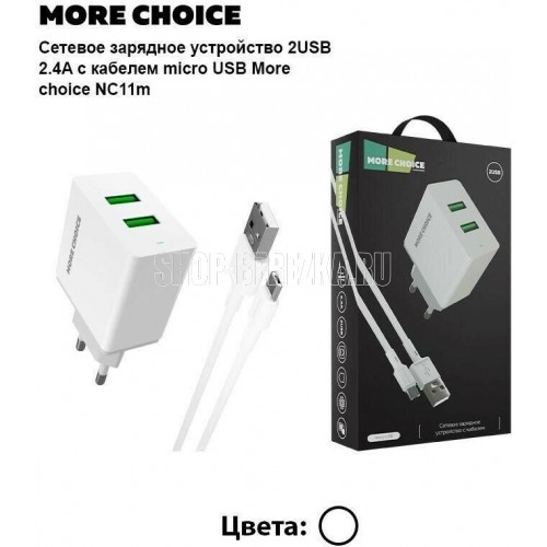 MORE CHOICE (4610196409035) NC11m White - СЗУ 2USB 2.4A для micro USB