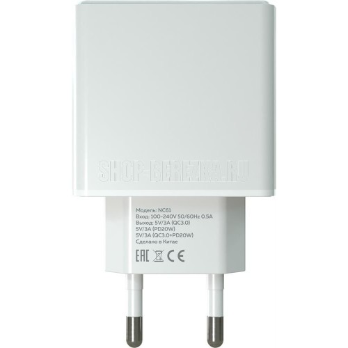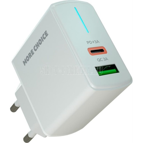 MORE CHOICE (4620202551252) NC61a White - 1USB+1USB-C 3.0A PD 20W+QC3.0 быстрая зарядка для Type-C