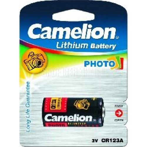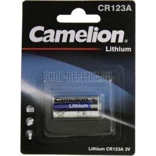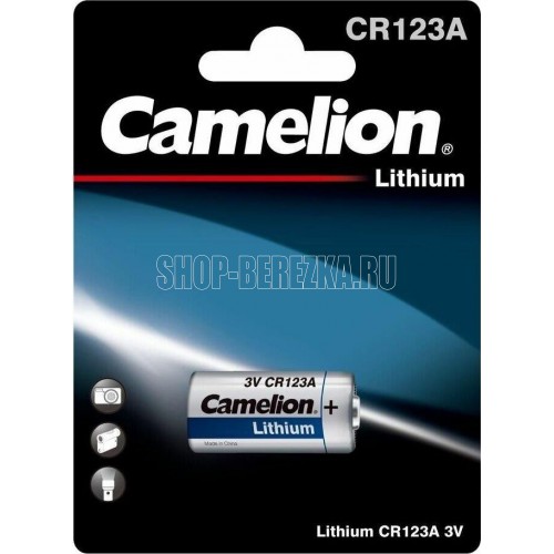 Батарейка литиевая Camelion CR123A-BP1, напряжение 3В, емкость 1300мА*ч, кол-во в упаковке 1 шт., размер упаковки 84x114x16,5 мм, использовать при температуре от -18 до + 55 °C, хранить в сухом помещении при температуре от +15 до +25°C. Срок хранения 5 лет.