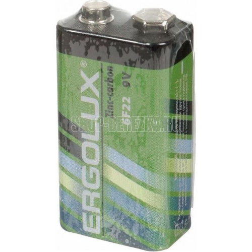 Батарейка Ergolux 6F22 SR1 (6F22SR1), напряжение 9В, емкость 450мА*ч, кол-во в упаковке 1 шт., размер упаковки 25,5x48,5x17,5 мм, использовать при температуре от -10 до + 40 °C