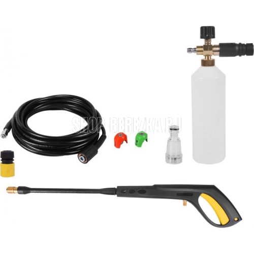 | Подробная комплектация | - мойка высокого давления 1 шт, < br/> - пистолет-распылитель разборный 1 шт, < br/> - шланг высокого давления 1 шт, < br/> - пеногенератор 1 шт, < br/> - игла для очистки сопла 1 шт, < br/> - сменные форсунки 2 шт, < br/> - фильтр 1 шт, |
