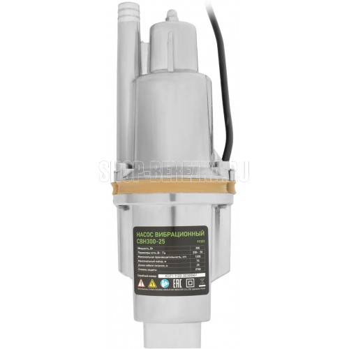 Номинальное напряжение - 230 В Резьба - 3/4" Степень защиты от влаги и пыли - IPX8 Тип ротора - сухой Установка насоса - вертикальная Тип - бочечный, колодезный, скважинный Мощность, Вт - 300 Длина кабеля питания, м - 25 Забор воды - верхний Качество воды - чистая Крепление насоса - трос Максимальная глубина погружения, м - 5 Максимальная температура воды, °C - 35 Максимальный диаметр прокачиваемых частиц, мм - 1 Максимальный напор, м - 75 Материал корпуса насосной части - алюминиевый сплав Материал крыльчатки/винта/мембраны - резина Минимальная температура воды, °C - 1 Остаточный уровень воды, мм - 300 Производительность, л/мин - 20 Тип насосной части - вибрационный Уровень шума, дБ – 80 Комплектация товара Насос - 1 шт Трос - 1 шт Хомут - 1 шт Руководство по эксплуатации - 1 1 шт