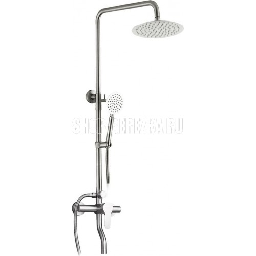 Душевая система со смесителем однорычажным с коротким изливом, с лейкой тропической d200мм, шлангом для душа 150см и ручной лейкой для душа d80мм 357511 выполненная из нержавеющей стали марки SUS304