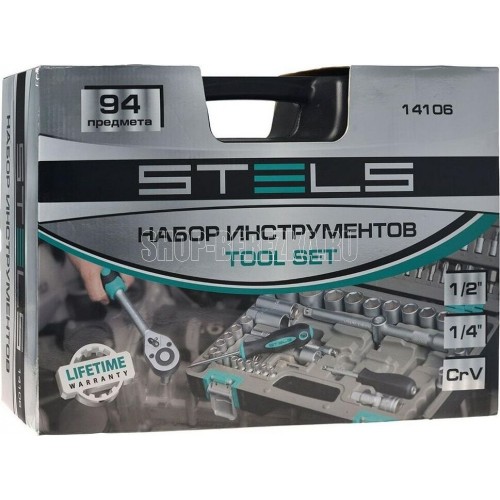 STELS Набор инструментов, 1/2", 1/4", CrV, пластиковый кейс 94 предм. 14106
