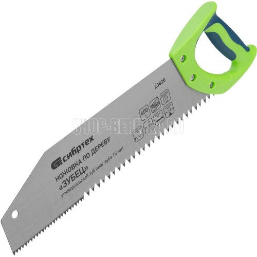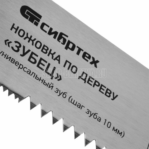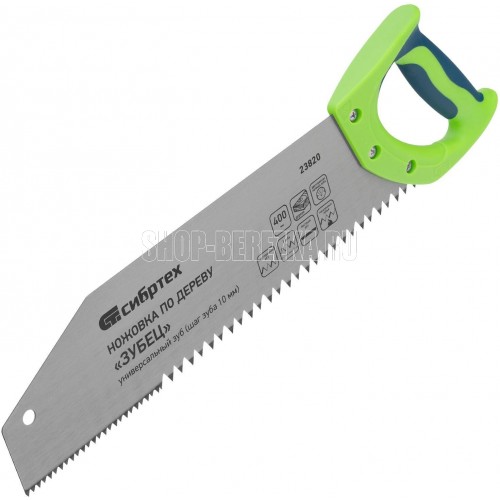 СИБРТЕХ Ножовка по дереву "Зубец", 400 мм, шаг зуба 10 мм, каленый зуб 2D, двухкомпонентная рукоятка 23820