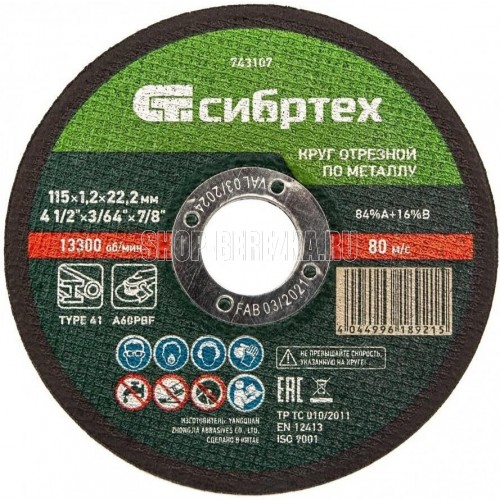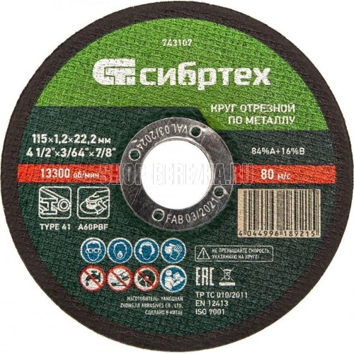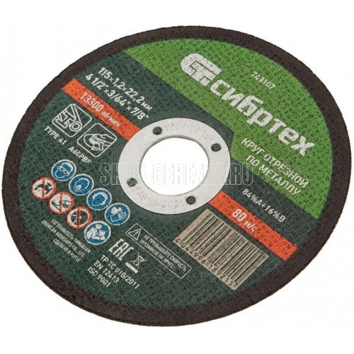 Отрезной круг по металлу Сибртех 743107, 115 х 1,2 х 22,2 мм, используется в качестве оснастки на УШМ для сухого реза изделий из углеродистых сталей: труб, арматуры, проволоки и т.д. Высокая производительность позволяет использовать круг как в быту, так и в частной мастерской или на небольших производствах.ПреимуществаАбразивные зерна из оксида алюминия имеют острые грани и легко справляются с резкой твердых материалов.Двухслойная усиленная стеклосетка придает кругу прочность на разрыв, что повышает безопасность работы.Бакелитовая связка с упрочняющими элементами обеспечивает максимальную износостойкость круга.Круг быстро режет материалы, позволяя получить аккуратный срез.Круг отличается превосходным качеством, т.к. изготовлен на высокотехнологичном оборудовании квалифицированным персоналом.